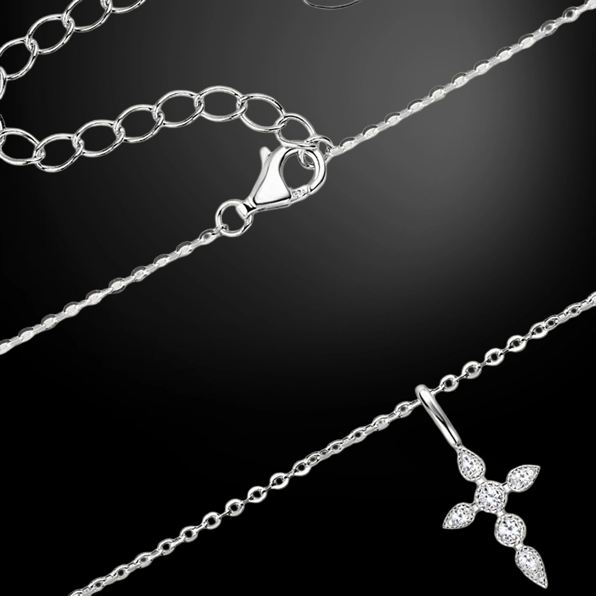 Refined and symbolic, this dainty moissanite cross necklace offers subtle sparkle in a timeless silhouette. Designed for everyday wear, it balances faith-inspired design with modern minimalism and lightweight comfort.
