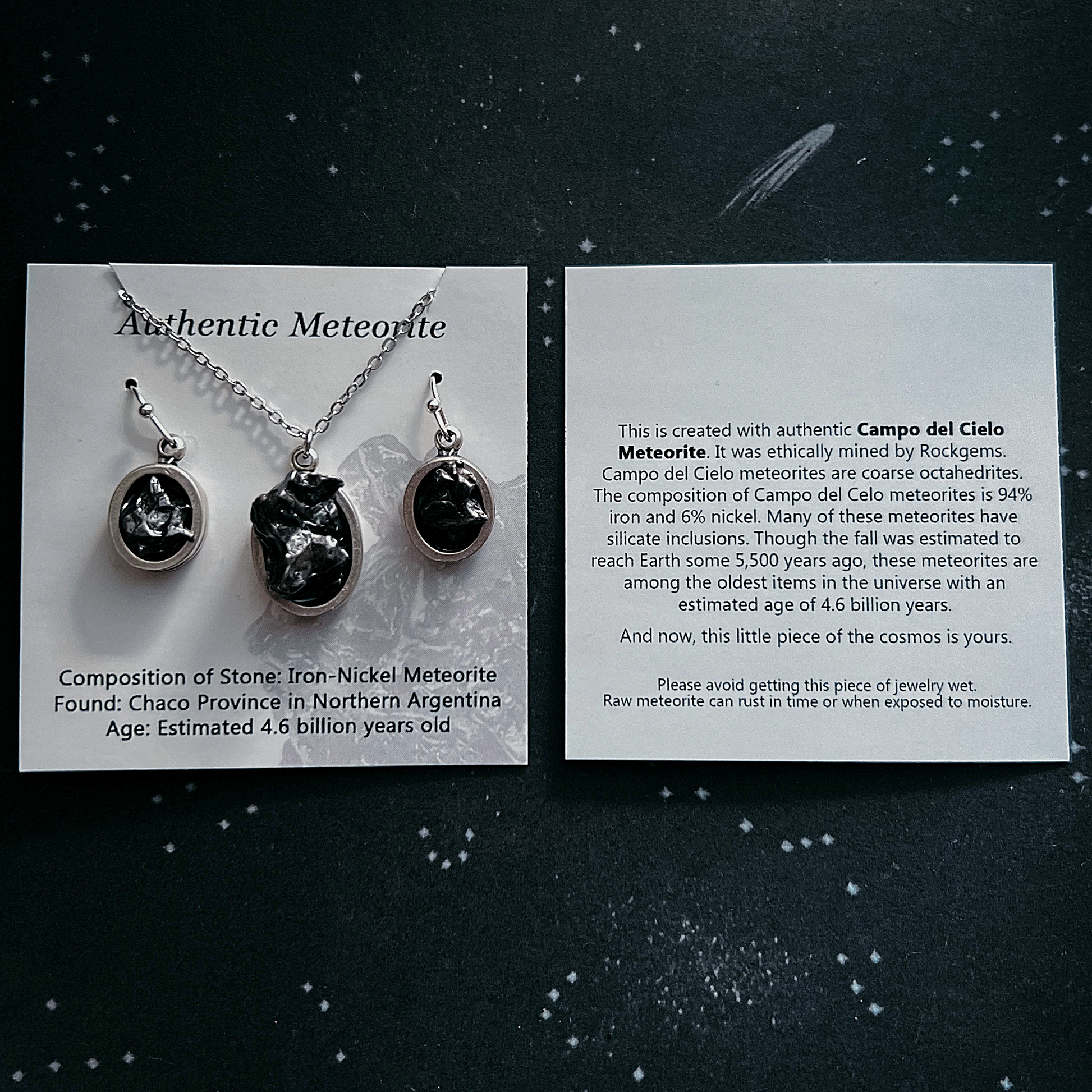 ⚠️ Note: Real meteorite may contain trace nickel and iron. Although the bezel minimizes direct contact, please avoid wearing if you have sensitivities.