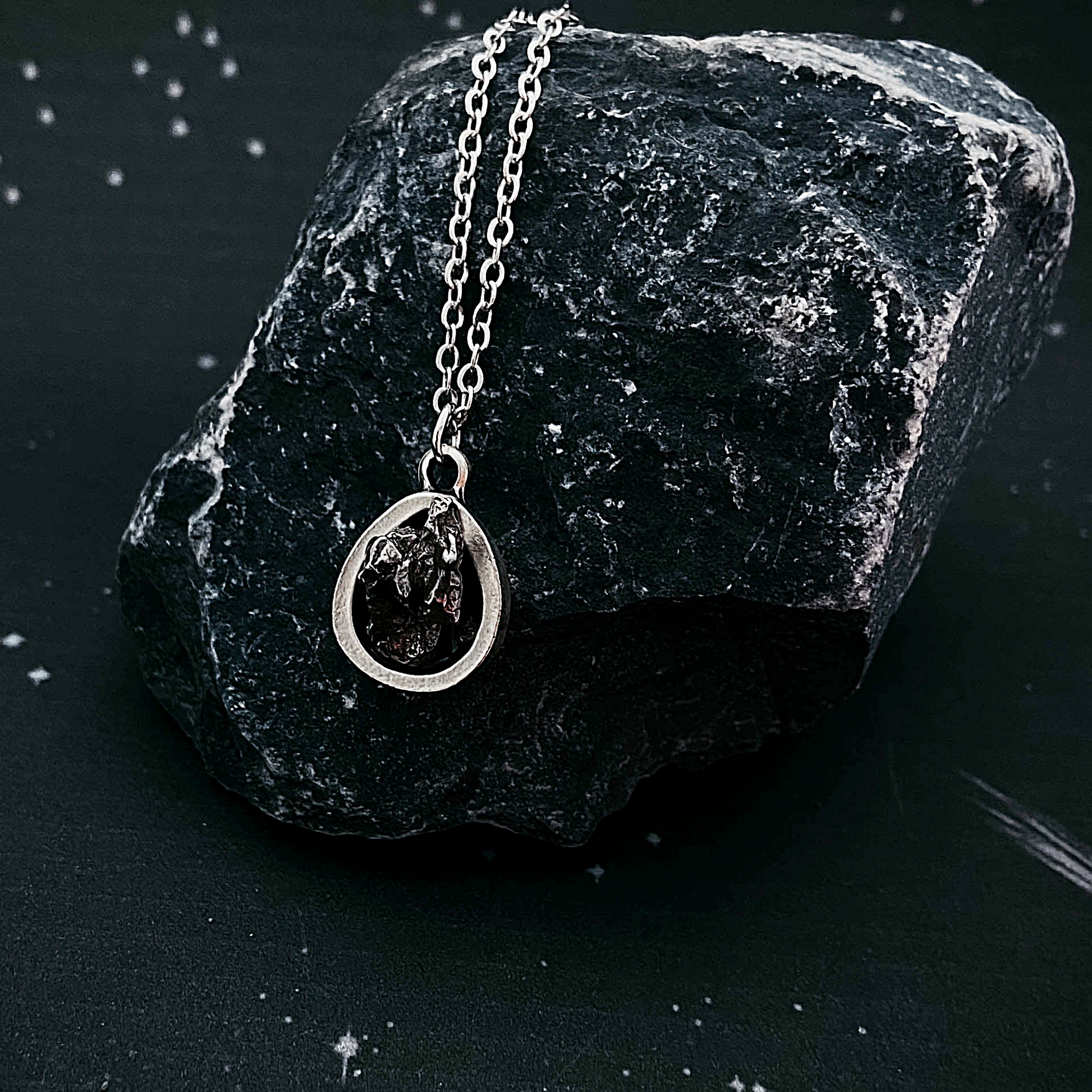 Small Teardrop Meteorite – Silver Cosmic Pendant Necklace